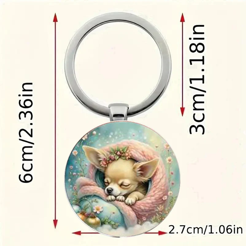 Vintage Chihuahua Floral Keychain Charm